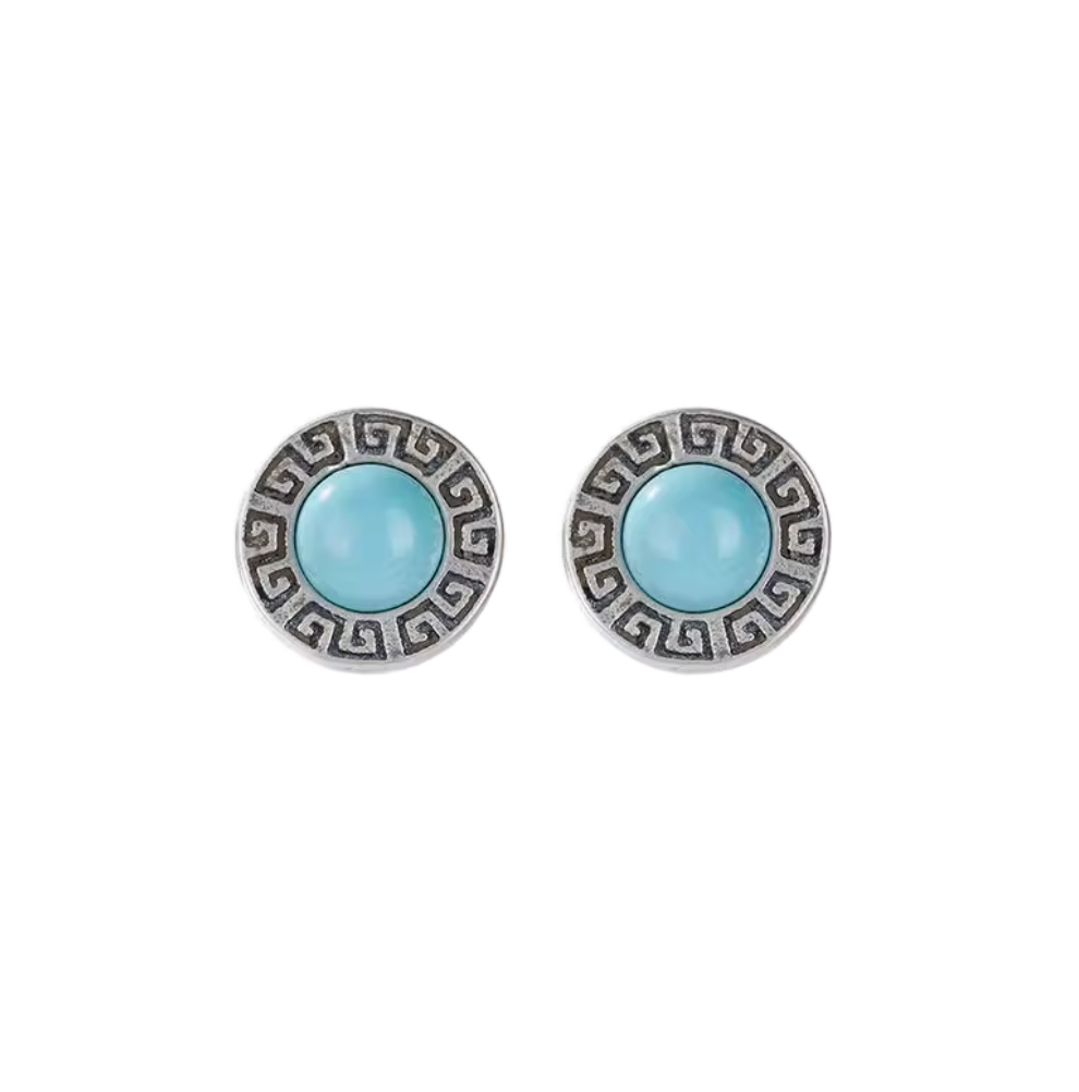 Each piece features a hand-set turquoise stone — small, vibrant, and full of quiet power. In nomadic belief, turquoise has long been revered as a stone of protection and clarity, a symbol of the open sky and the vast landscape, believed to keep the spirit grounded and safe during long journeys.