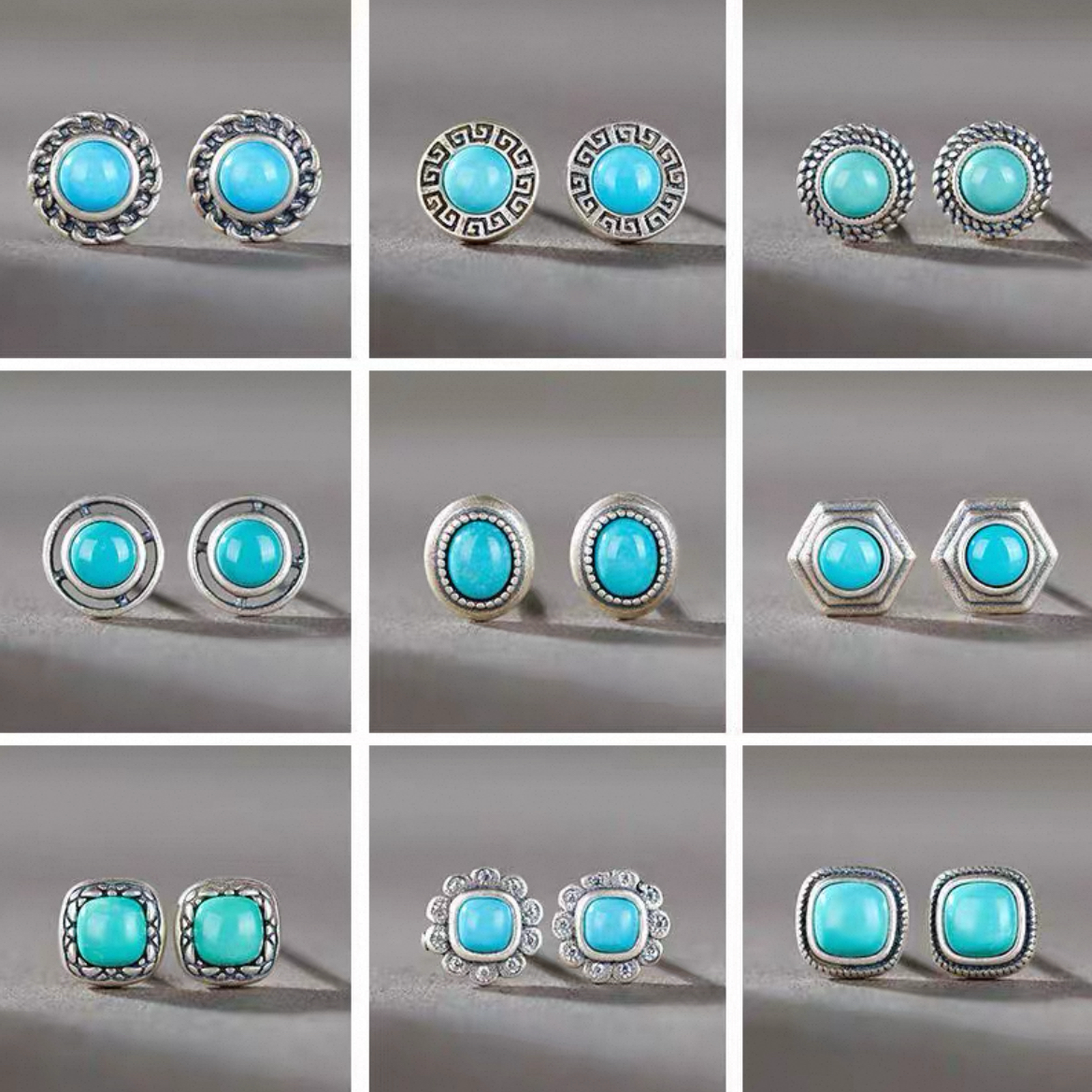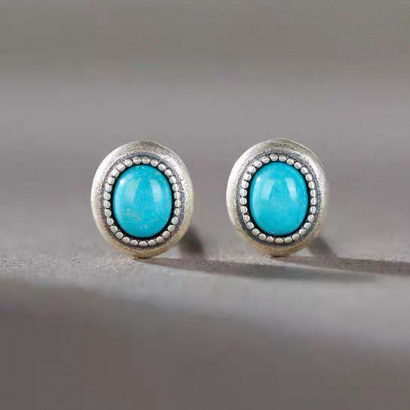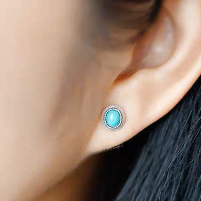 「Sky Seed」Classical Pattern Sterling Silver Inlaid Turquoise Earrings