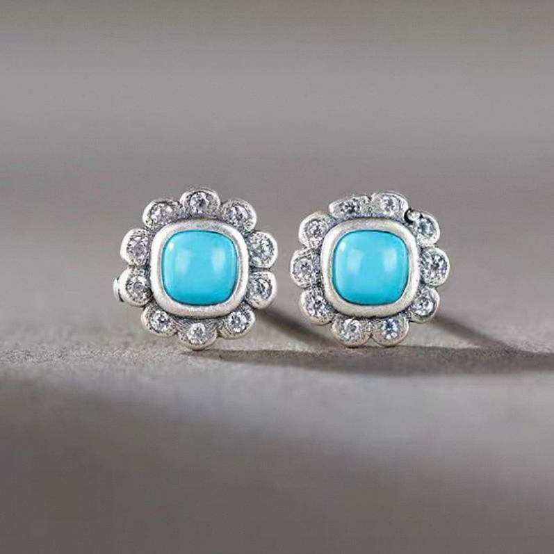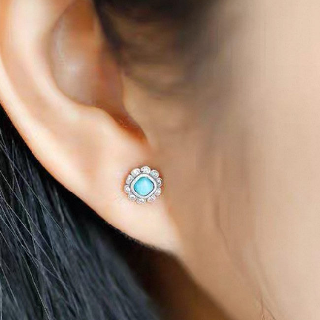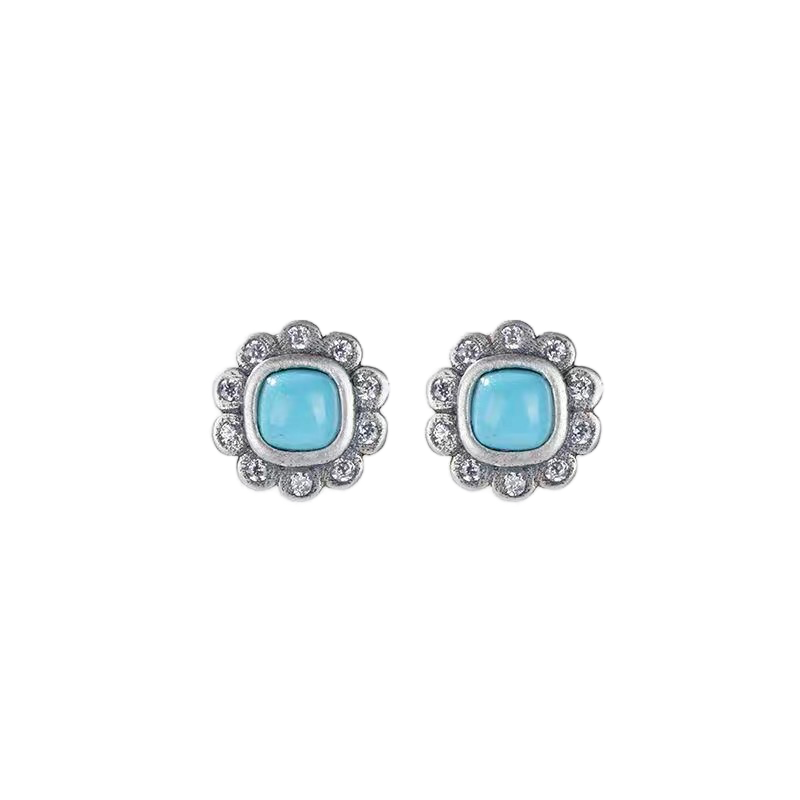 「Sky Seed」Daisy Shape Sterling Silver Inlaid Turquoise Earrings