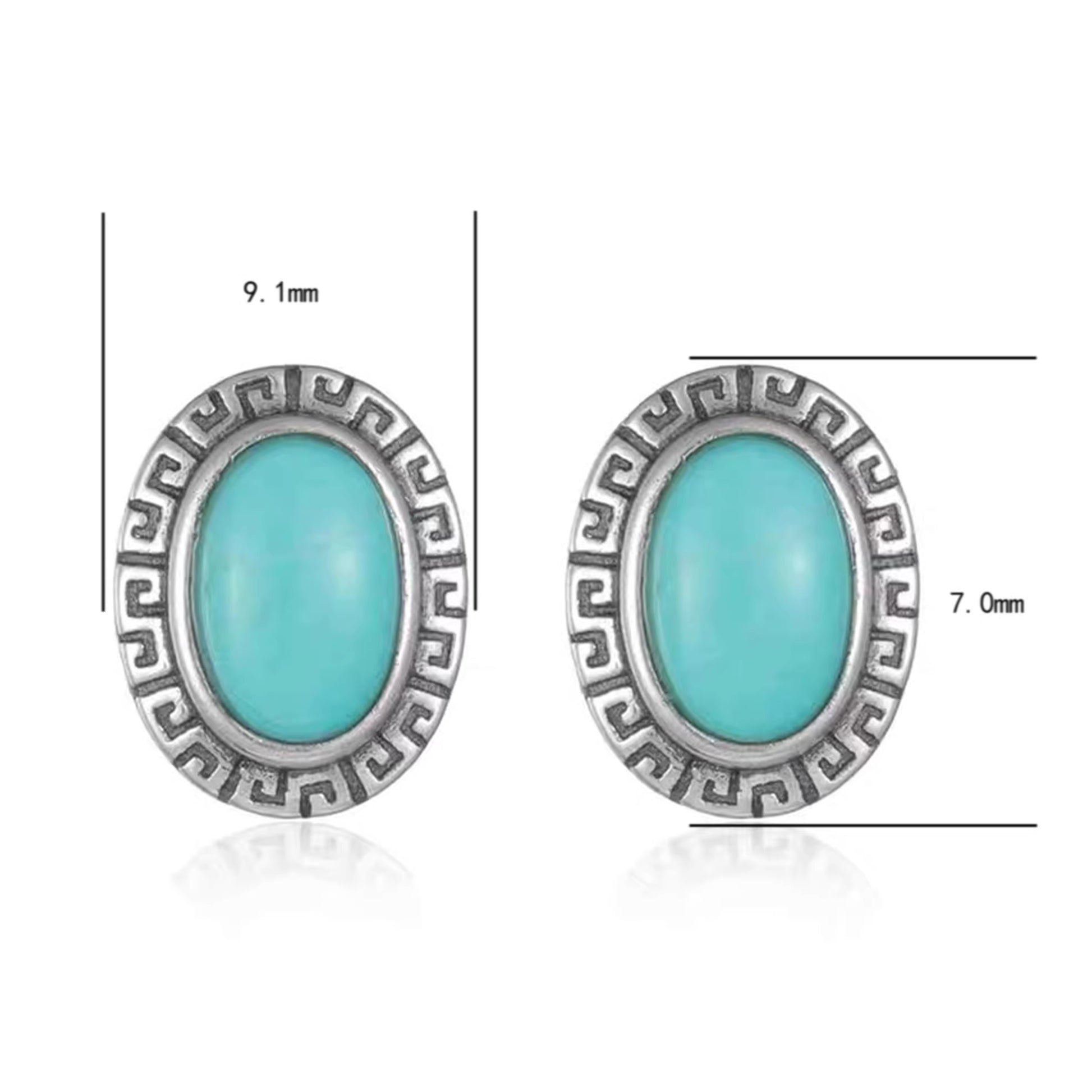 「Sky Seed」ellipse Pattern Silver Earrings Inlaid with Turquoise