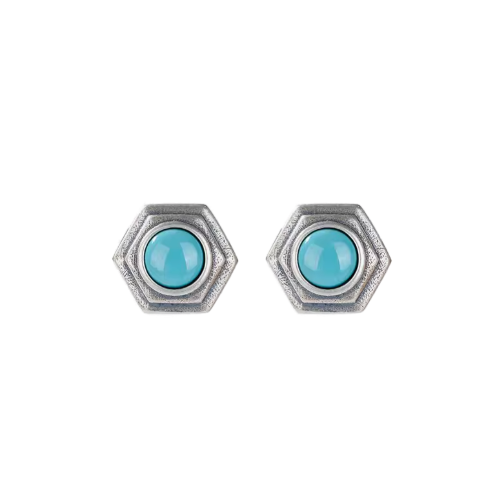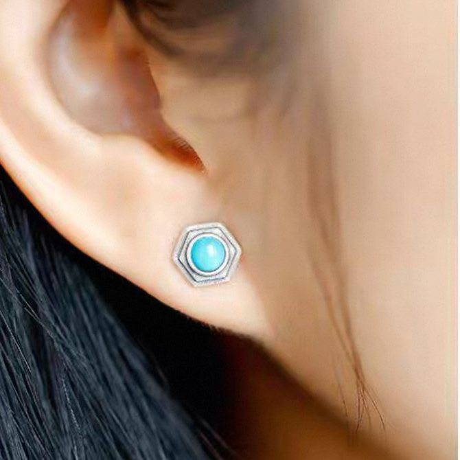 「Sky Seed」Hexagon Sterling Silver Inlaid Turquoise Earrings