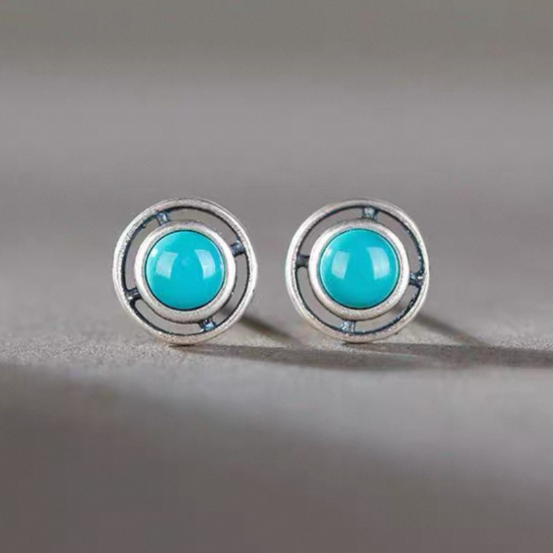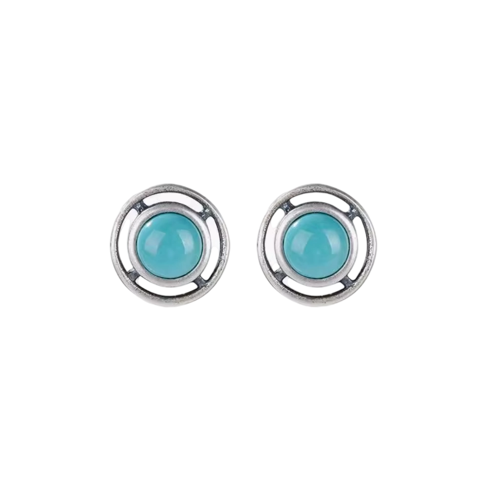 「Sky Seed」Hollow Geometry Sterling Silver Inlaid Turquoise Earrings